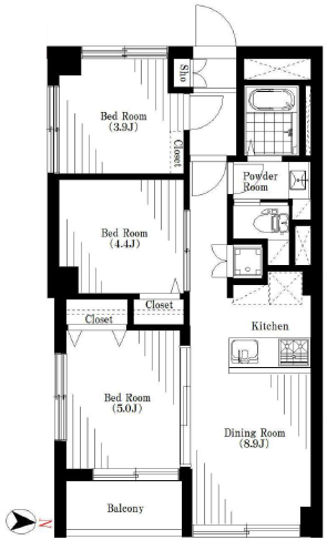| 間取り詳細 | 洋室約5.0帖、約4.4帖、約3.9帖、DK約8.9帖 |