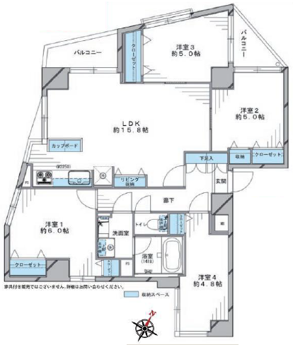 洋室約6.0帖、約5.0帖×2、約4.8帖、LDK約15.8帖