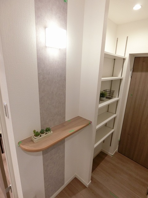 ・フローリング・クロス(天井、壁)・クッションフロア(洗面所、トイレ)・システムキッチン(食洗器、浄水機能付)・ユニットバス・洗面化粧台・ウォシュレット・給湯器・建具・シーリングファン・シューズボックス・エコカラット・コスモスイッチ・照明器具・クリーニング