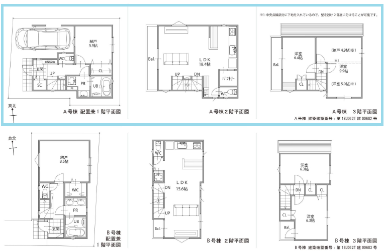 | 間取り詳細 | 洋室約9.9帖、約6.4帖、LDK約18.4帖、サービスルーム約5.9帖 |