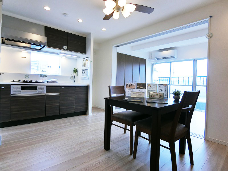 ・フローリング・クロス(天井、壁)・クッションフロア(洗面所、トイレ)・システムキッチン(浄水機能付)・ユニットバス・洗面化粧台・ウォシュレット・給湯器・建具・網戸・シューズボックス・メタカラー・コスモスイッチ・照明器具・クリーニング