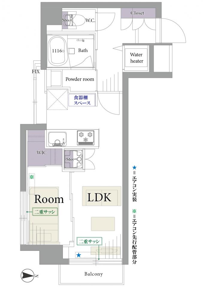 ・システムキッチンV-style(Panasonic)・ユニットバスMR-J1116(Panasonic)(追焚き機能付、浴室換気乾燥暖房機付)・洗面化粧台CLine(Panasonic)・洗濯水栓、防水パン・トイレ(アメージュ・ベーシアシリーズ、LIXIL)(温水洗浄機能付)・フローリング貼替(DAIKEN)・建具、玄関収納交換・収納棚新設・新規照明器具取付・壁、天井クロス貼替・フロアタイル貼替・スイッチ、コンセント交換・エアコン(1基)・電気温水器交換・ハウスクリーニング