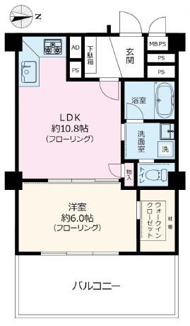 洋室約6.0帖、LDK約10.8帖