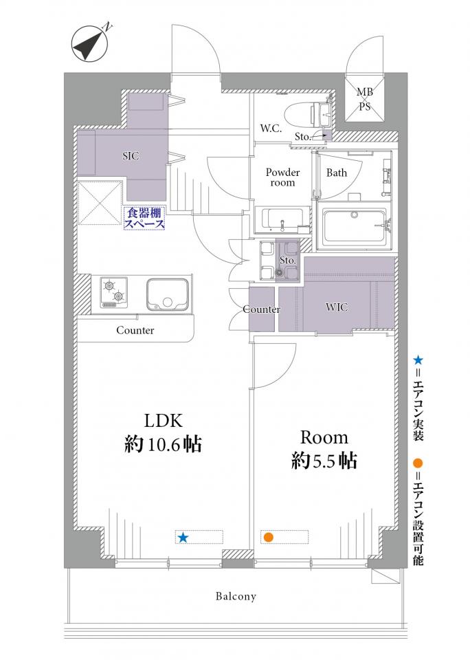 | 間取り詳細 | 洋室約5.5帖、LDK約10.6帖、WIC、SIC |