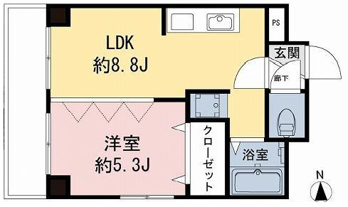 | 間取り詳細 | 洋室約5.3帖、LDK約8.8帖 |