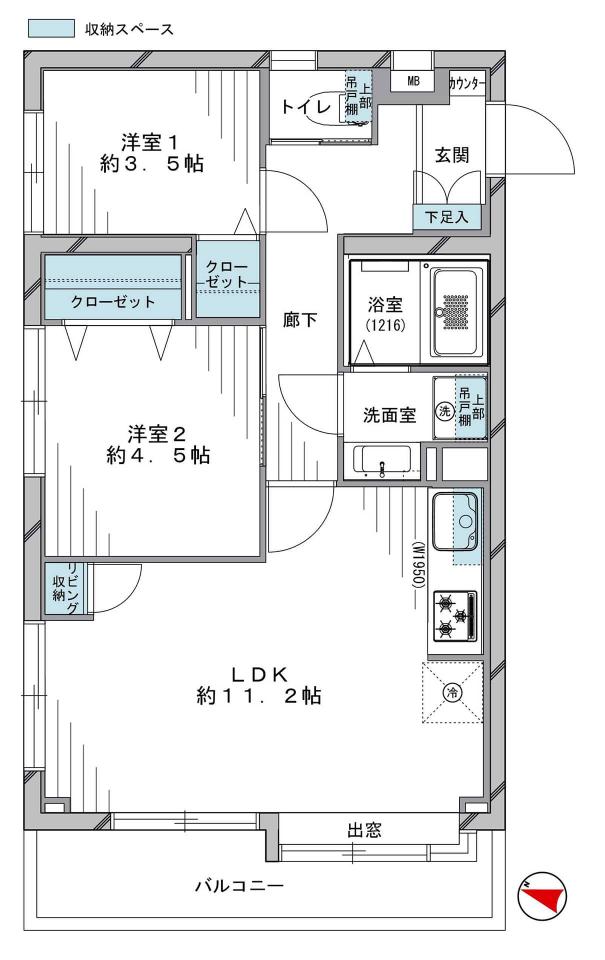洋室約4.5帖、約3.5帖、LDK約11.2帖