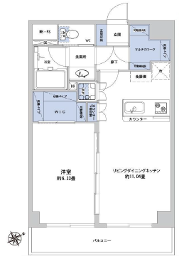 洋室約6.33帖、LDK約11.04帖