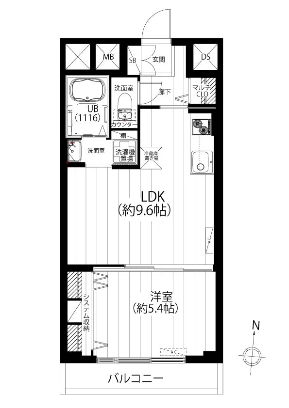 洋室約5.4、LDK約9.6帖
