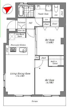 洋室約6.7帖、約5.6帖、LDK約12.3帖