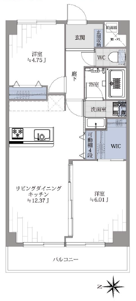 | 間取り詳細 | 洋室約6.01帖、約4.75帖、LDK約12.37帖 |