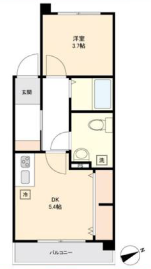 | 間取り詳細 | 洋室約3.7帖、DK約5.4帖 |
