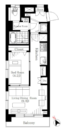 | 間取り詳細 | 洋室約4.2帖、LDK約9.3帖 |