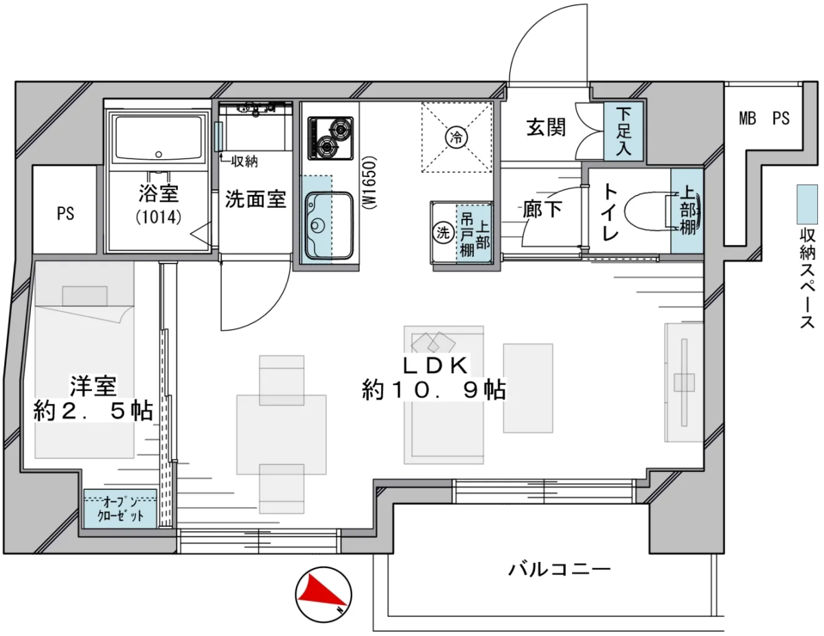 | 間取り詳細 | 洋室約2.5、LDK約10.9 |