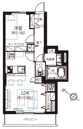 | 間取り詳細 | 洋室約5.1、LDK約10.8帖 |