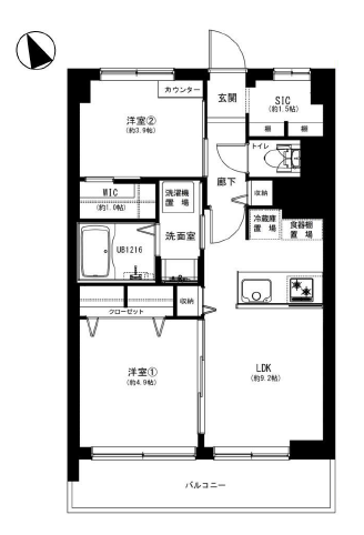 | 間取り詳細 | 洋室約4.9帖、約3.9帖、LDK約9.2帖 |