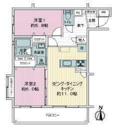 | 間取り詳細 | 洋室約6.0帖、約5.8帖、LDK約11.0帖 |