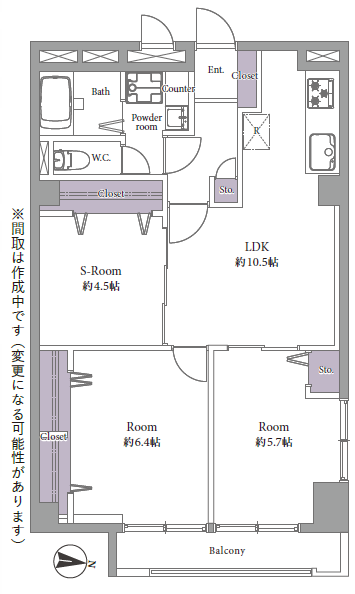 | 間取り詳細 | 洋室約6.4帖、約5.7帖、約4.5帖、LDK約10.5帖 |