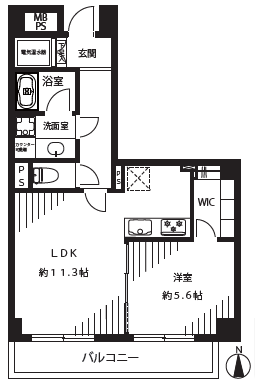 | 間取り詳細 | 洋室約5.6帖、LDK約11.3帖 |