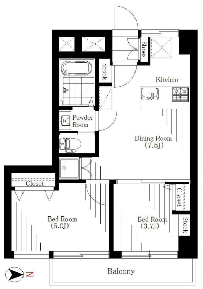 | 間取り詳細 | 洋室約5.0帖、約3.7帖、DK約7.5帖 |