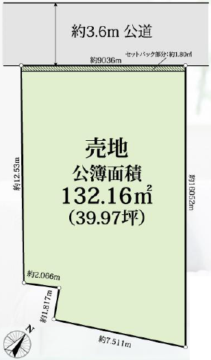 セットバック約1.80㎡(約0.54坪)要す/準防火地域/第1種高度地区/設備:都市ガス・公営水道・本下水(但し、各引込管費用別途要)