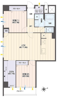洋室約5.7帖、約5.6帖、LDK約17.0帖、DEN約3.7帖
