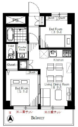 | 間取り詳細 | 洋室約5.1帖、約3.9帖、DK約8.3帖 |