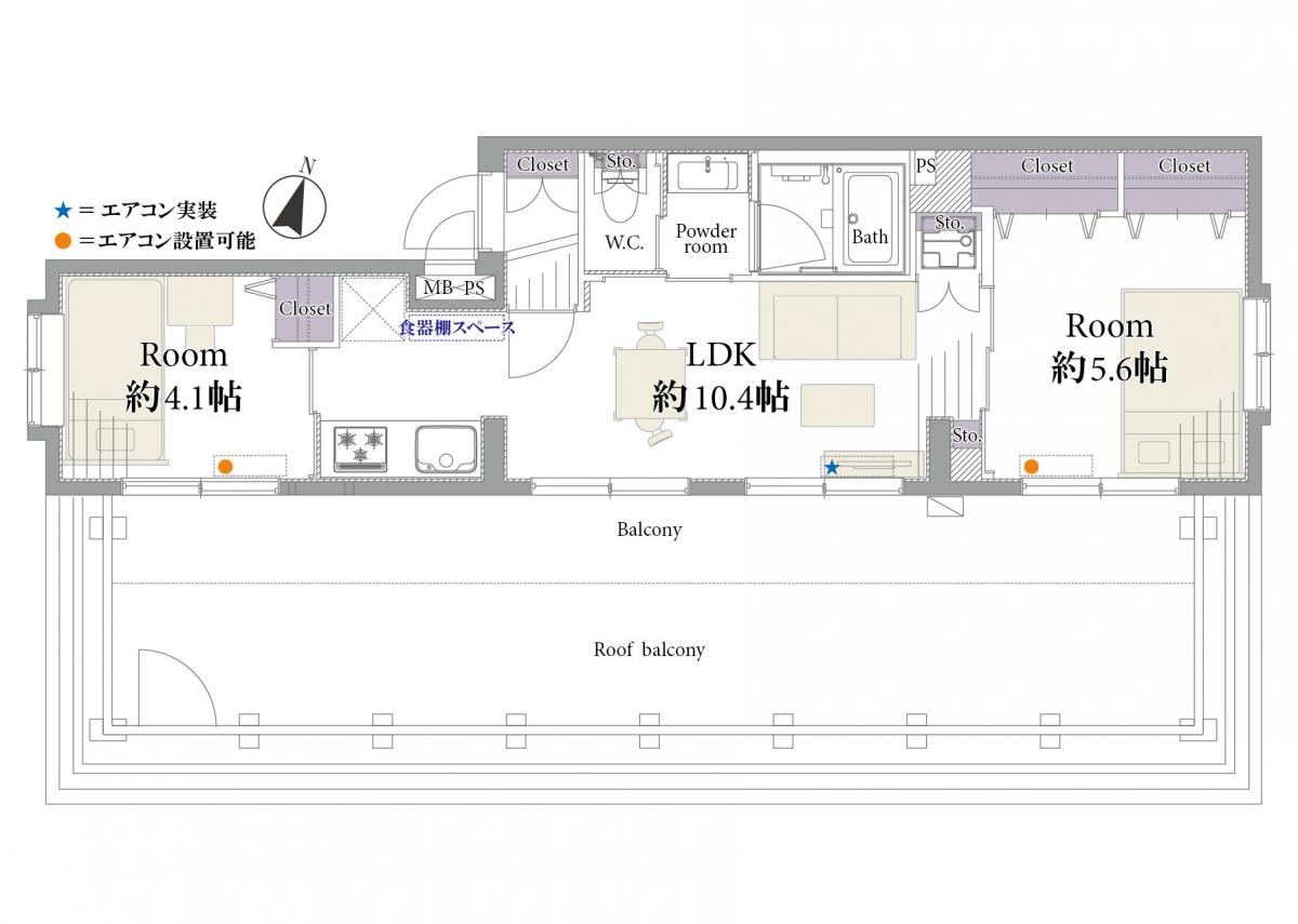 洋室約5.6帖、約4.1帖、LDK約10.4帖