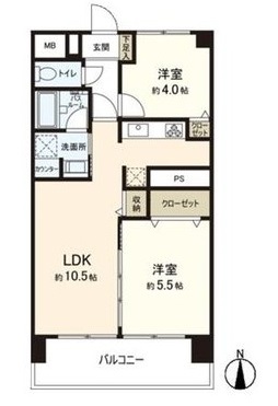 洋室約5.5帖、約4.0帖、LDK約10.5帖