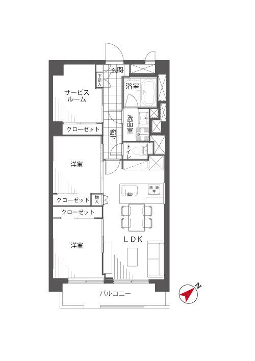 | 間取り詳細 | 洋室×2、LDK、サービスルーム |