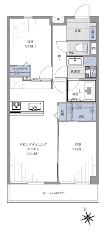 | 間取り詳細 | 洋室約5.03帖、約5.01帖、LDK約11.26帖 |