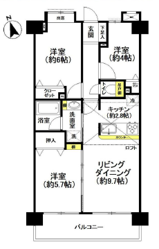 | 間取り詳細 | 洋室約6帖、約5.7帖、約4帖、LD約9.7帖、K約2.8帖 |