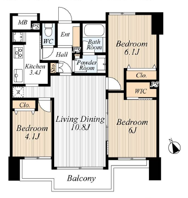 洋約6.1帖、約6.0帖、約4.1帖、LD約10.8帖、K約3.4帖