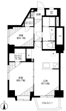 | 間取り詳細 | 洋室約6.7帖、約4.1帖、LDK約10帖 |