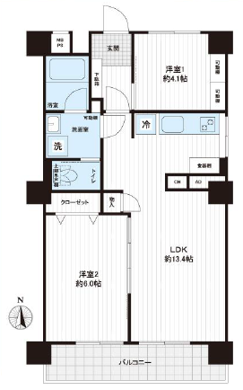 | 間取り詳細 | 洋室約6.0帖、約4.1帖、LDK約13.4帖 |